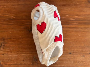 なめらかな肌触りで 程よい厚みのある フランスのメルトンフリース そして軽くて保温性も高く お洗濯後の渇きも早いという・・・ とっても欲ばりな イイコトづくめなフリース やさしい杢オートミール 明るめトーンで 赤色もこもこハートが パッと映えます^^ おなか部分もハート尽くし モチモチやさしいワッフル素材 スッキリ配色で しっかりあったか キュートな可愛さデス♪ いろんな毛色のワンコさんに似合うと思う! 袖なしタイプのあったかウエアは 重宝すること間違いなし! 着せやすく着心地もとっても良さそう☆ 冬の1枚にぜひ^^ 裁断により柄の出方が変わります お洗濯は 手洗いもしくは裏返して ネットに入れて洗濯機で 裏返すだけで毛玉になりにくいです |