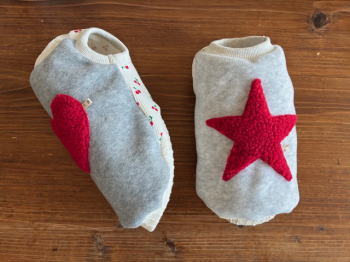 なめらかな肌触りで 程よい厚みのある フランスのメルトンフリース そして軽くて保温性も高く お洗濯後の渇きも早いという・・・ とっても欲ばりな イイコトづくめなフリース 写真だと微妙な違いですが 杢グレーと杢オートミール (濃いめの杢グレーと薄めの杢グレー) ![]() 明るめトーンで 赤色もこもこハートと星が パッと映えます^^ おなか部分は 肌触りバツグンな やさしいワッフル素材 サクランボが可愛すぎかー^^ あたたかさとかわいさが ギュッとつまったスタド冬の定番服 背中にハートと星を背負って まわりの人たちもほっこりさせてしまう やさしい仕上がりデス^^ 袖なしタイプのあったかウエアは 重宝すること間違いなし! 着せやすく着心地もとっても良さそう☆ 冬の1枚にぜひ^^ お洗濯は 手洗いもしくは裏返してネットに入れて洗濯機で 裏返すだけで毛玉になりにくいです |